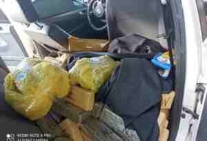 Chegando ao local a equipe constatou que no interior do veículo VW Voyage de cor branca havia vários tabletes de maconha, que posteriormente pesados somaram cerca 488 quilos.