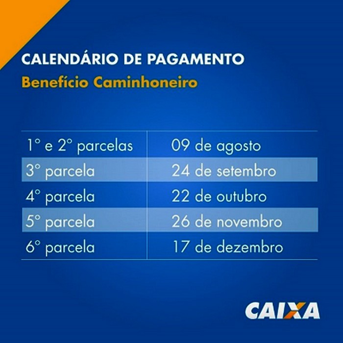 A medida prevê crédito mensal aos caminhoneiros de R$ 1 mil até dezembro de 2022. Neste mês, os motoristas recebem duas parcelas do benefício, ou seja, R$ 2 mil, referentes aos meses de julho e agosto.