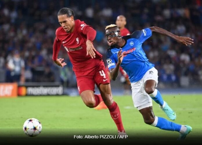 Aos 16, o Napoli teve outro pênalti a seu favor, desta vez por pisão de Van Dijk em Oshimen. O próprio atacante foi para a cobrança, mas Alisson defendeu em seu lado direito, a meia altura.