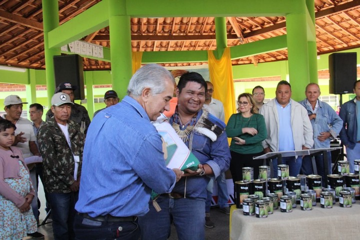 Durante a cerimônia, o governador entregou um lote de sementes de milho, feijão e hortaliças à aldeia, como parte do Programa de Apoio às Comunidades Indígenas (Proacin) criado em 2015 para fomentar a agricultura familiar sustentável. Em todo o Estado, o programa já distribuiu este ano cinco mil sacas de sementes milho, 1.860 sacas de feijão e 450 kg de hortaliças às 73 comunidades indígenas.