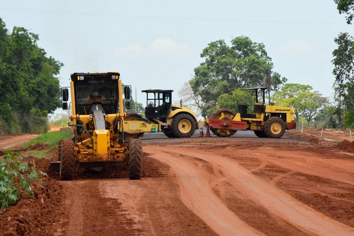 Com 70% da obra concluída, a estrada vicinal que dá acesso ao distrito de Cachoeirão já está com mais de 3 quilômetros asfaltados a partir do entroncamento com a BR-262, em Terenos.