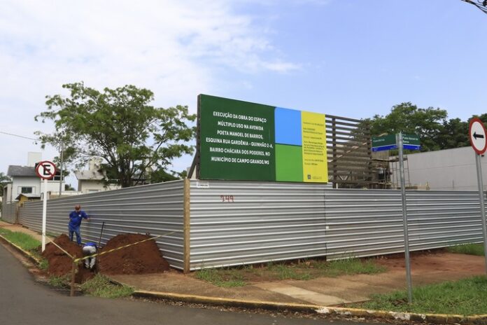 Para dar suporte a quem visita ou pratica esportes no Parque dos Poderes, em Campo Grande, o Governo de Mato Grosso do Sul está construindo um espaço de múltiplo uso próximo ao quartel do Corpo de Bombeiros Militar, com banheiros, fraldário, playground, bebedouros, bicicletário e estacionamento. A obra segue dentro do cronograma e deverá ser entregue em dezembro deste ano.