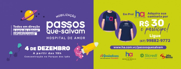 A Associação de Apoiadores do Hospital de Amor em Dourados e o Instituto de Prevenção de Dourados realizam, neste domingo (4), a “Caminhada Passos que Salvam”. O evento conta com apoio da Prefeitura e tem o objetivo de conscientizar a população sobre os sinais e sintomas do câncer infanto-juvenil, importância do diagnóstico precoce da doença, além angariar fundos para a instituição que atende os pacientes em Barretos, interior de São Paulo.