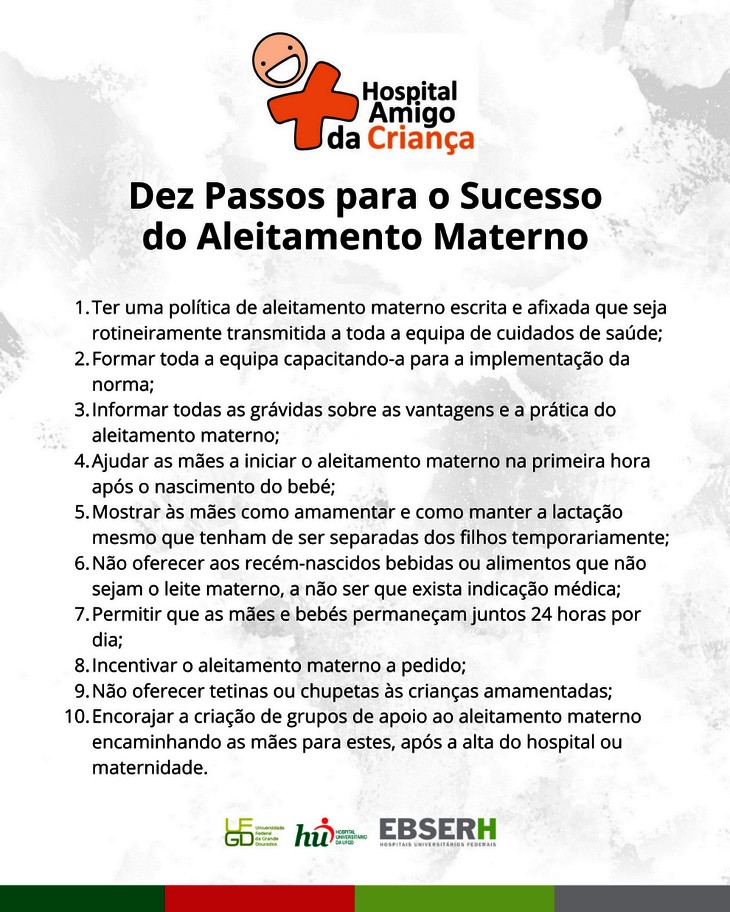 O credenciamento como Hospital Amigo da Criança se dá quando a unidade de saúde mobiliza seus profissionais e muda a concepção de tratamento à mãe e ao bebê. A partir daí, a rotina de trabalho gira em torno da promoção do aleitamento materno e da consequente redução da mortalidade infantil.