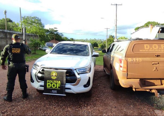 Uma operação conjunta desencadeada por policiais militares do BOPE (Batalhão de Operações Policiais Especiais) e do DOF (Departamento de Operações de Fronteira), na tarde deste domingo (12), em Bela Vista, resultou nas apreensões de um fuzil calibre 762, uma pistola 9 milímetros, diversas munições e uma camioneta roubada em Minas Gerais. Um foragido da justiça, que atirou contra os policiais, foi alvejado.