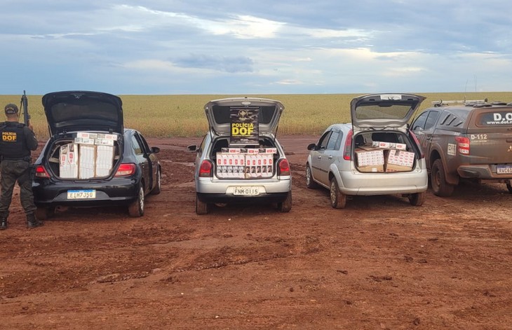 Policiais do DOF (Departamento de Operações de Fronteira) apreenderam, na tarde de ontem (9/3), três veículos carregados com 800 pacotes de cigarros e 80 pneus. Os produtos, de origem estrangeira, não seguiam com a documentação de regularidade fiscal e sanitária.