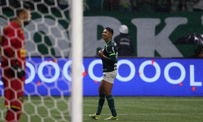 Aos 41 minutos Gabriel Menino recebeu na ponta direita e cruzou para o meio da área, onde Rony se antecipou para se livrar da marcação adversária e cabecear com liberdade para superar o goleiro Alex Alves.