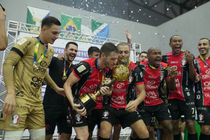 O Joinville Esporte Clube (JEC/Krona) é o campeão da Supercopa Masculina de Futsal 2023. A equipe catarinense goleou a Associação Desportiva Brasil Futuro/Sorocaba/Magnus Futsal (SP) por 4 a 1, neste domingo (19), para ficar com o título. A competição, que teve início no dia 15 de março, teve disputas na Arena Maracaju “Dr. Adersino Valensoela Gomes”, em Maracaju, e contou com apoio do Governo de Mato Grosso do Sul, por meio da Fundesporte (Fundação de Desporto e Lazer) e Setescc (Secretaria de Estado de Turismo, Esporte, Cultura e Cidadania).