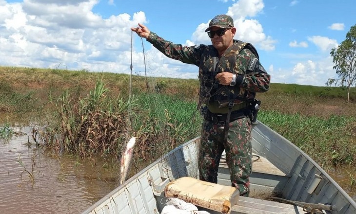 Desde a madrugada de ontem (29) até o final da manhã de hoje (30), uma equipe de Policiais Militares Ambientais de Dourados que trabalha na área do município de Fátima do Sul já havia fiscalizado quatro acampamentos, 14 embarcações de pescadores amadores e profissionais, bem como pessoas que pescavam nos barrancos do rio, em um total de 57 pescadores e apreenderam petrechos de pesca ilegais.