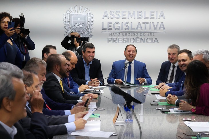 O governador Eduardo Riedel se reuniu nesta terça-feira (18) com os deputados da Assembleia Legislativa de Mato Grosso do Sul (Alems) para discutir os trâmites e destinos das emendas parlamentares. Nas novas regras para o repasse das emendas ficou determinado que, no mínimo, 60% dos valores serão destinados para a área da Saúde, o que corresponde a R$ 28,8 milhões do montante de R$ 48 milhões orçados para este ano.