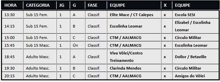 Programação para esta terça feira: