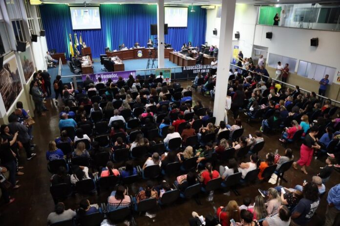 Com as galerias completamente tomadas por servidores do município, a maioria professores da rede municipal, os vereadores de Dourados aprovaram na noite desta segunda-feira (22), em segunda discussão e votação, projeto de lei de autoria do poder executivo que altera dispositivos na Lei Complementar nº 118, de 31 de dezembro de 2007, que dispõe sobre o Plano de Cargos, Carreira e Remuneração (PCCR) do profissional da Educação municipal.