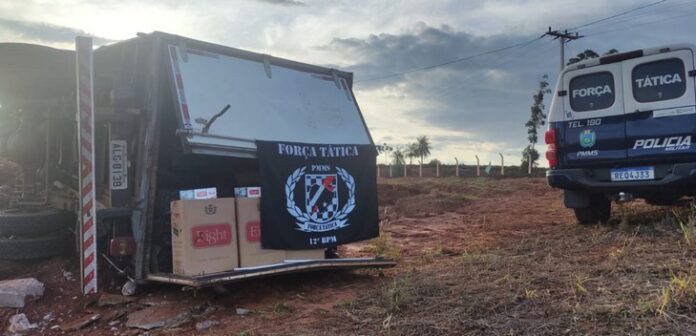 A equipe da 12ºBPM/CPA-1/PMMS realizou a apreensão de um caminhão carregado com uma quantidade expressiva de cigarros contrabandeados do Paraguai.