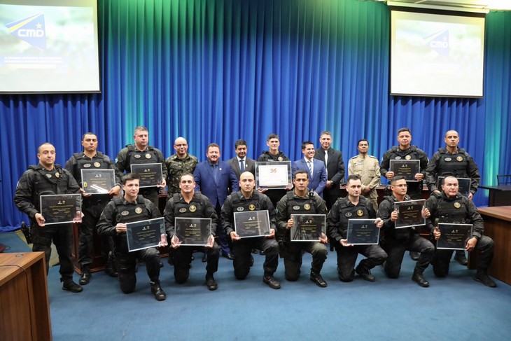 A Câmara de Vereadores de Dourados realizou na noite desta terça-feira (30/05) a entrega de 15 homenagens a policiais do DOF (Departamento de Operações de Fronteira) em reconhecimento aos serviços prestados em defesa da sociedade sul-mato-grossense. A proposição foi apresentada pelo vereador Dr. Diogo Castilho (PSDB).