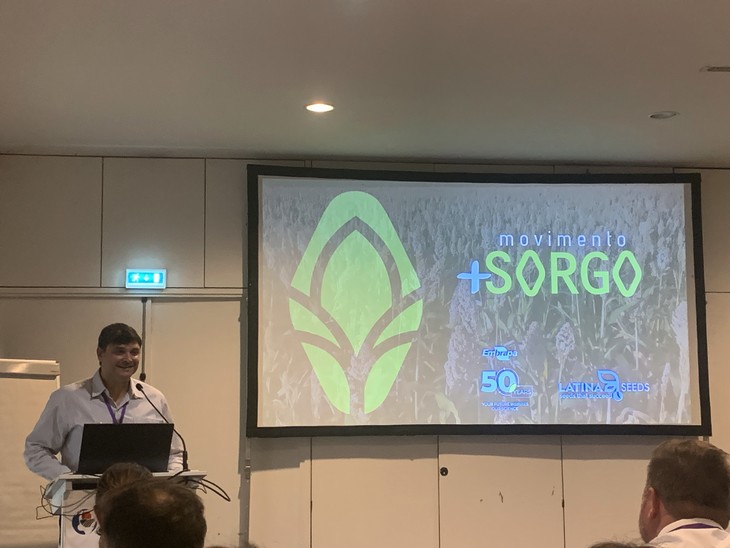 Ótima receptividade e manifestações voluntárias no sentido de adesões. Estas foram as primeiras reações que a delegação brasileira presente na França observou após a apresentação do “Movimento + Sorgo” durante a Conferência Global do Sorgo – Resiliência e Sustentabilidade Diante das Mudanças Climáticas (Global Sorghum Conference – Resiliency and Sustainability in the Face of Climate Change), realizado esta semana no Cento de Eventos Corum, em Montpellier. O detalhamento do projeto brasileiro ficou a cargo de Vinícius Pereira Guimarães, coordenador do escritório da Embrapa na Europa (Labex-Europa).
