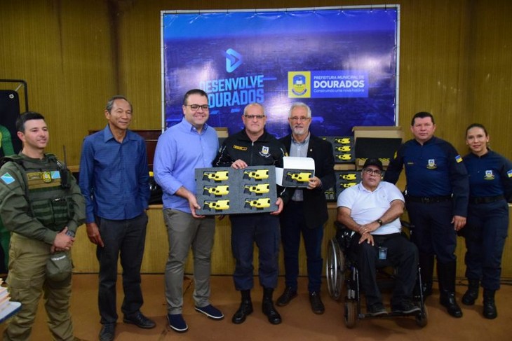 O prefeito de Dourados, Alan Guedes, entregou nesta quinta-feira (22) equipamentos para a Guarda Municipal de Dourados, adquiridos com recursos de uma emenda parlamentar do ex-deputado federal, Tio Trutis, com recursos próprios da Prefeitura Municipal. Os profissionais receberam novos dispositivos eletrônicos de contenção, além de drones para auxiliar nos serviços realizados. A ação faz parte do projeto de modernização da instituição, idealizado pela direção da GMD e pela gestão.