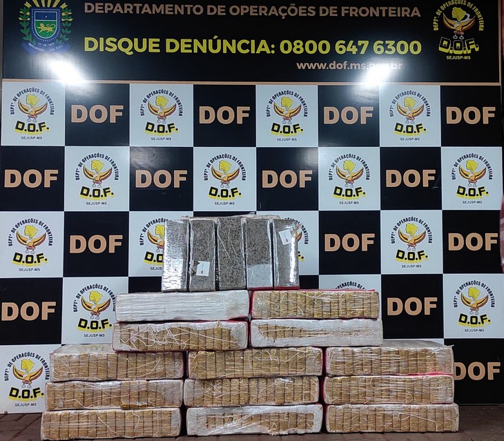 Policiais militares do DOF (Departamento de Operações de Fronteira) apreenderam na madrugada desta quinta-feira (22/06), durante um bloqueio policial para fiscalização na rodovia MS-379, na área rural do município de Laguna Carapã, um veículo KIA BESTA de cor preta carregado com 500 quilos de maconha distribuídos em vários fardos prensados.