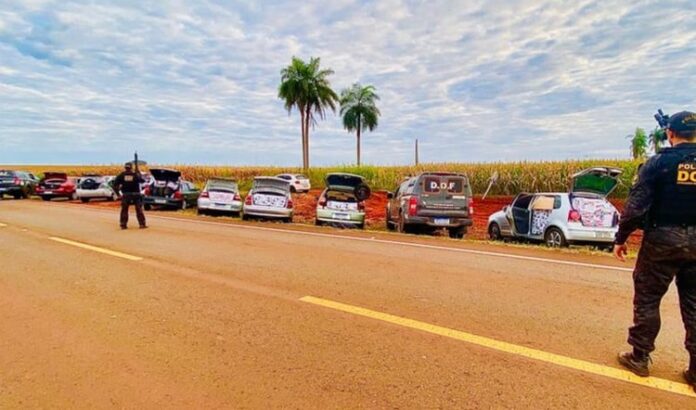 Policiais militares do DOF (Departamento de Operações de Fronteira) apreenderam nove veículos carregados com pneus e cigarros contrabandeados do Paraguai. Ao todo foram apreendidos 5.160 pacotes de cigarros; 239 pneus; e, 80 unidades de cigarros eletrônicos.
