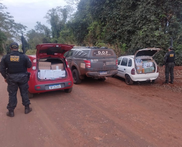Policiais militares do DOF (Departamento de Operações de Fronteira) apreenderam na tarde de ontem (14), um Fiat Uno vermelho e um Corsa branco carregados com produtos de origem estrangeira, sem a documentação de regularidade fiscal.