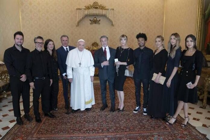 O papa Francisco recebeu nesta sexta-feira (8) o ator e diretor americano Sylvester Stallone, eternizado por seu papel nas franquias “Rocky” e “Rambo”.