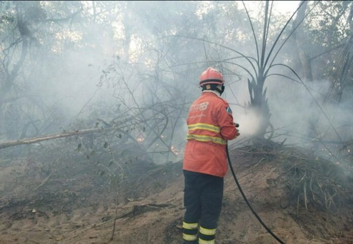 O Corpo de Bombeiros de Mato Grosso do Sul atua no controle e extinção de três incêndios florestais no Pantanal. No foco de maior proporção, na região pantaneira do Rio Negro onde a área queimada já é de aproximadamente 400 hectares, o trabalho é realizado há três dias.