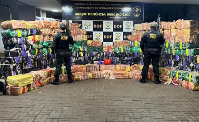 O DOF (Departamento de Operações de Fronteira) apreendeu nesta quinta-feira (19), na MS-156 em Amambaí, 4 mil quilos de drogas que eram transportados em uma carreta Mercedes Benz, carregada com farelo de milho. Um homem 31 anos de idade foi preso em flagrante.