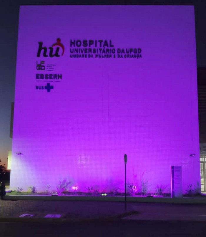 O prédio da Unidade da Mulher e da Criança está iluminado na cor rosa, reforçando a mensagem da necessidade do autocuidado, ficando assim até o final do mês de outubro.