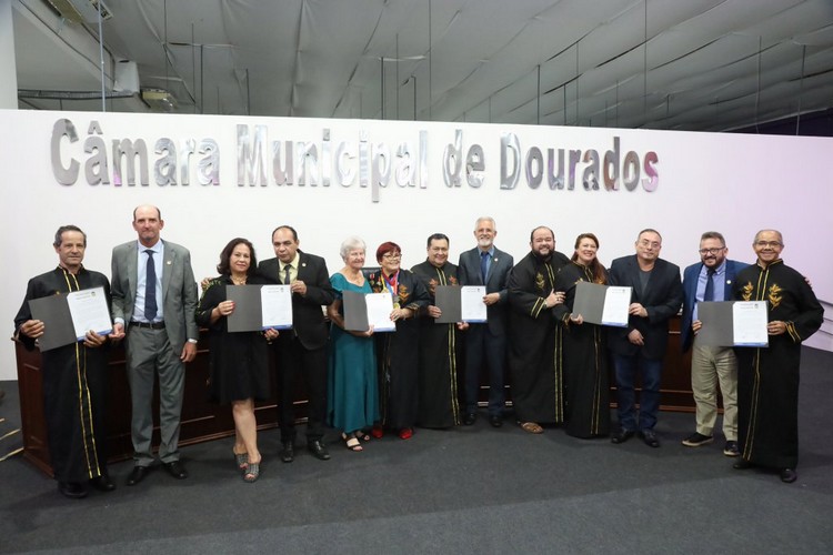 A Câmara de Dourados realizou na noite de sexta-feira (20(, sessão solene em homenagem à literatura e honras à Academia Douradense de Letras (ADL) e também entrega do Prêmio Ildefonso Ribeiro da Silva, XIII edição – 2023. Proposta pelos vereadores Laudir Munaretto (MDB) e Marcelo Mourão (Podemos), a sessão solene foi prestigiada por grande número de pessoas, entre agentes culturais, amigos e familiares dos homenageados.