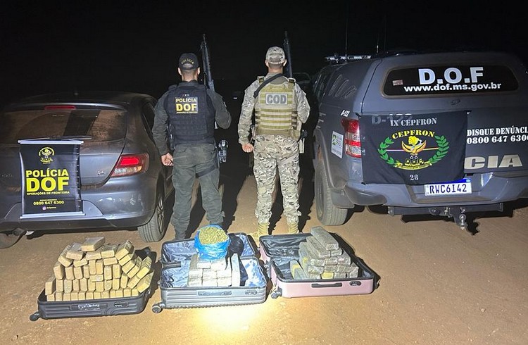 Policiais militares do DOF (Departamento de Operações de Fronteira) apreenderam nesta quarta-feira (22), na MS-462 em Maracaju, mais de cem quilos de drogas que eram transportados em um VW/Gol. Na ação dois homens de 23 e 27 anos de idade foram presos e um adolescente de 17 anos apreendido.