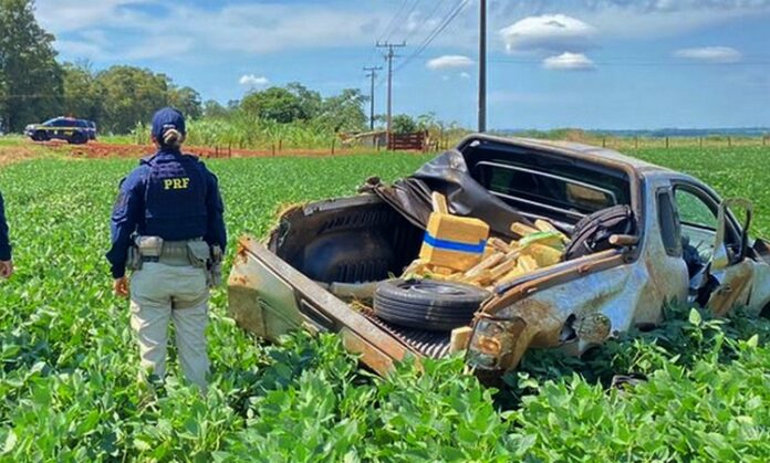 Traficante tenta fugir da PRF e capota veículo com mais de meia tonelada de maconha