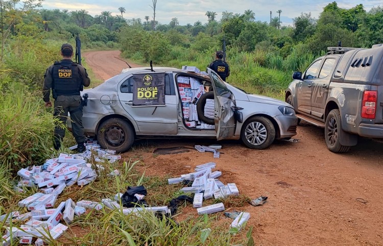 Policiais militares do DOF (Departamento de Operações de Fronteira) apreenderam, na tarde desta quarta-feira (20) um veículo VW Voyage de cor prata, com placas de Campo Grande (MS), carregado com 2.050 pacotes de cigarros adquiridos no Paraguai.