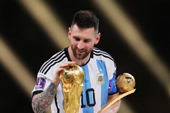 Messi superou o francês Kylian Mbappé, que joga no PSG, e venceu o norueguês Erling Haaland, goleador do Manchester City, da Inglaterra, nos critérios de desempate.