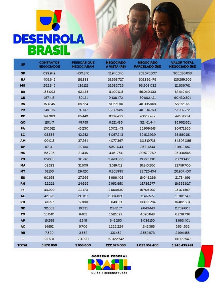 A dimensão da relevância do Desenrola é visível na diferença entre a dívida original e o valor final renegociado. Em Mato Grosso do Sul, os débitos somavam mais de R$ 159,4 milhões. Após os ajustes oferecidos com os descontos, o total devido caiu para R$ 25 milhões. Desses, R$ 4,4 milhões foram quitados à vista e R$ 20,5 milhões reorganizados de forma parcelada.