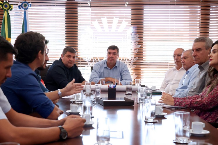 O governador Eduardo Riedel, durante reunião com o prefeito, Josmail Rodrigues, anunciou que o Governo do Estado vai executar a obra do anel viário.