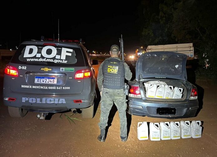 Policiais militares do DOF (Departamento de Operações de Fronteira) apreenderam na noite deste sábado (2) na rodovia MS-379 região de Dourados, um veículo GM Vectra carregado defensivos agrícolas, sendo 500 quilos em pacotes e 100 litros em galões, além de um rádio de comunicação instalado e em operação.