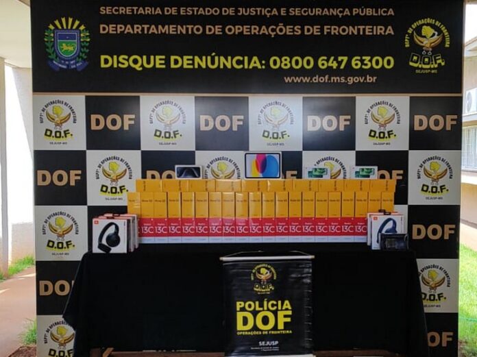 Policiais Militares do DOF (Departamento de Operações de Fronteira) apreenderam na manhã desta segunda-feira (18), na MS-379, um veículo carregado com eletrônicos e aparelhos de telefone celular produto de descaminho.