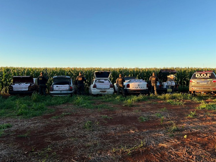 Policiais Militares do DOF (Departamento de Operações de Fronteira) apreenderam na tarde de sábado (20), cinco veículos carregados com 5.200 pacotes de cigarros contrabandeados do Paraguai.