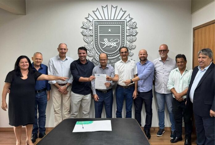 O prefeito de Caarapó, André Nezzi e o vice-prefeito Gordo da Tigre, acompanhado de representantes do Poder Legislativo municipal, participaram na última segunda-feira (22), em Campo Grande, de ato do governo de Mato Grosso do Sul que anunciou investimentos de R$ 7,5 bilhões para obras de infraestrutura nas 79 cidades de Mato Grosso do Sul até 2026, no âmbito do Programa “MS Ativo” – Municipalismo.