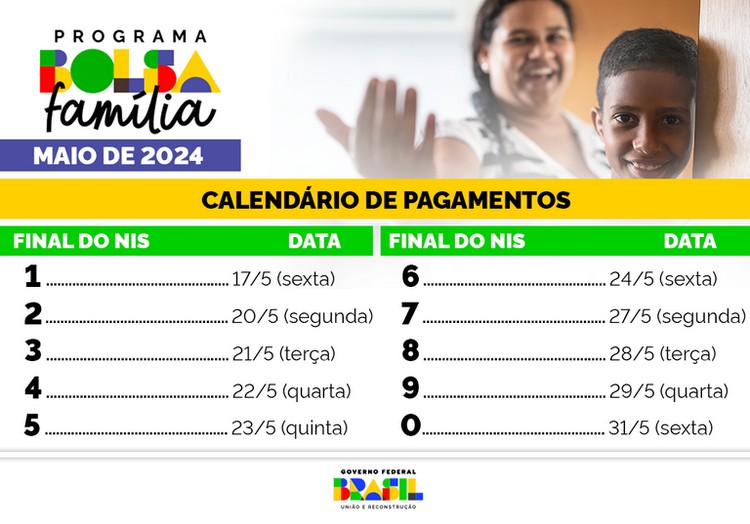 Os 210.115 beneficiários do Bolsa Família nos 79 municípios do Mato Grosso do Sul começam a receber os repasses de maio nesta sexta-feira, dia 17. O cronograma de pagamentos é escalonado, de acordo com o final do Número de Identificação Social (NIS), e segue até o fim do mês (confira tabela). O valor médio do benefício no estado é de R$ 689,98, a partir de um investimento de R$ 144,9 milhões do Governo Federal.