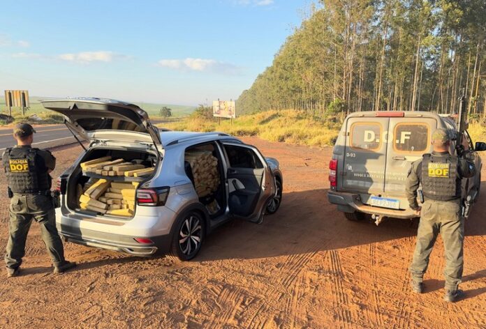 Policiais militares do DOF (Departamento de Operações de Fronteira) recuperaram, na manhã desta terça-feira (2), um veículo VW T-Cross carregado com 358,3 quilos de maconha. O veículo foi roubado no Estado do Rio de Janeiro no dia 5 de maio do corrente ano.