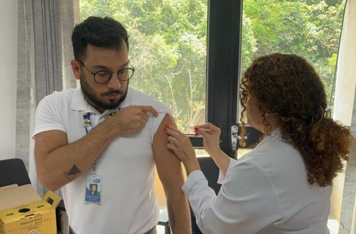 A SES (Secretaria Estadual de Saúde de Mato Grosso do Sul) iniciou nesta segunda-feira (23) a 2ª edição da campanha “Saúde Vacina Mais: Cuidar de Quem Cuida”, com a vacinação dos trabalhadores da saúde. A campanha é uma ação conjunta entre a SES, o CDI (Coordenadoria de Imunização), a CESP (Coordenadoria de Emergências em Saúde Pública) e o CEREST (Centro de Referência em Saúde do Trabalhador).