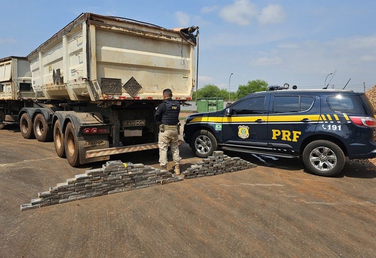 Os policiais fiscalizavam na BR-262 e abordaram um caminhão Scania acoplado a dois semirreboques. Durante entrevista o condutor disse que transportava soja até a capital, mas demonstrou nervosismo durante a fiscalização.