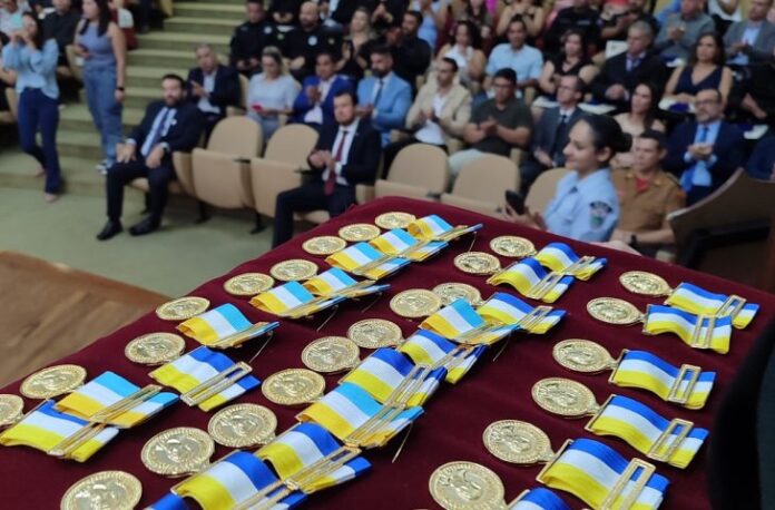 O evento destacou as contribuições de servidores e colaboradores no enfrentamento das dificuldades do sistema prisional e na implementação de estratégias que visam a ressocialização e segurança. Ao todo, 67 pessoas foram medalhadas.