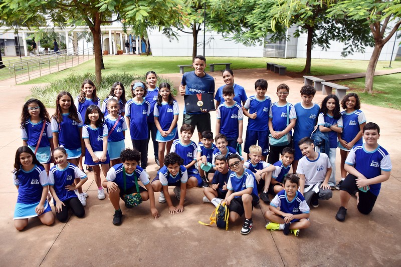 A primeira parada de Yeltsin Jacques foi na Escola Sesi Campo Grande, nesta sexta-feira (31/01). Estudantes do ensino fundamental e médio tiveram oportunidade de tirar fotos, ver de perto a medalha dourada conquistada em Paris e conversar com o ídolo sul-mato-grossense.