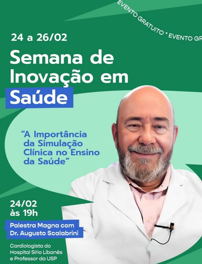 O evento terá início com a palestra magna ministrada pelo Dr. Augusto Scalabrini, cardiologista do Hospital Sírio Libanês e professor da USP, no dia 24 de fevereiro, das 19h às 22h. A palestra, que será gratuita, tem como título “A importância da simulação clínica no ensino da saúde”.