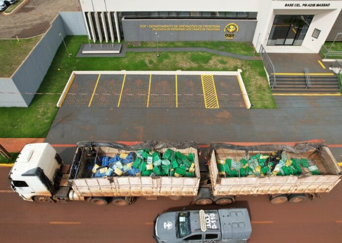 O material apreendido, avaliado em aproximadamente R$ 16 milhões, foi encaminhado à Defron (Delegacia Especializada em Repressão aos Crimes de Fronteira), em Dourados.
