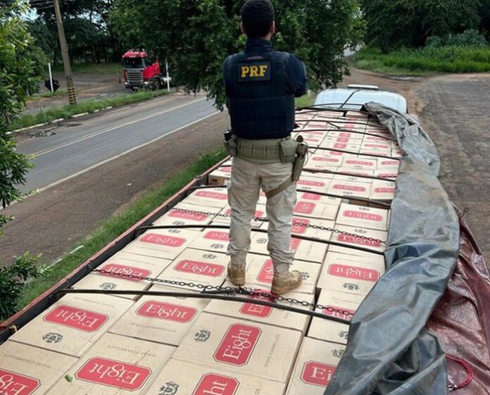 A Polícia Rodoviária Federal (PRF) apreendeu 400 mil maços de cigarros, na tarde desta quarta-feira (2), em Ivinhema (MS).