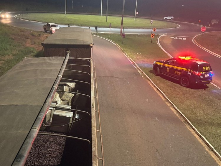 A Polícia Rodoviária Federal (PRF) apreendeu 2 toneladas de maconha e prendeu o homem que transportava a droga, nesta segunda-feira (07), em Paranaíba/MS. Os fardos da droga estavam em cima de uma carga de minério de ferro.