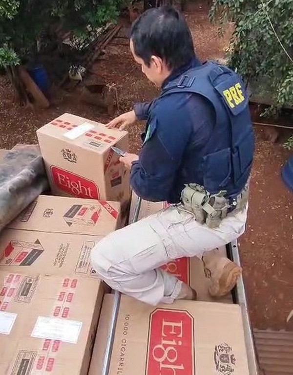 Em vistoria, constatou-se que o conjunto estava completamente carregado com grande quantidade de caixas de cigarro de origem estrangeira, desprovidas de documentação fiscal. A quantidade aproximada foi de 850 mil maços, com contagem exata a ser realizada posteriormente pela Receita Federal do Brasil em Ponta Porã/MS, para onde foram encaminhados o veículo e a carga.