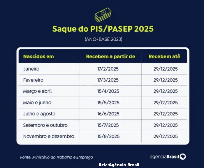 Cerca de 3,6 milhões de trabalhadores com carteira assinada nascidos em novembro e dezembro e que ganham até dois salários mínimos podem sacar, a partir desta sexta-feira (15), o valor do abono salarial do Programa de Integração Social (PIS) e do Programa de Formação do Patrimônio do Servidor Público (Pasep) em 2025 (ano-base 2023). A quantia está disponível no Portal Gov.br. As informações são da Agência Brasil.